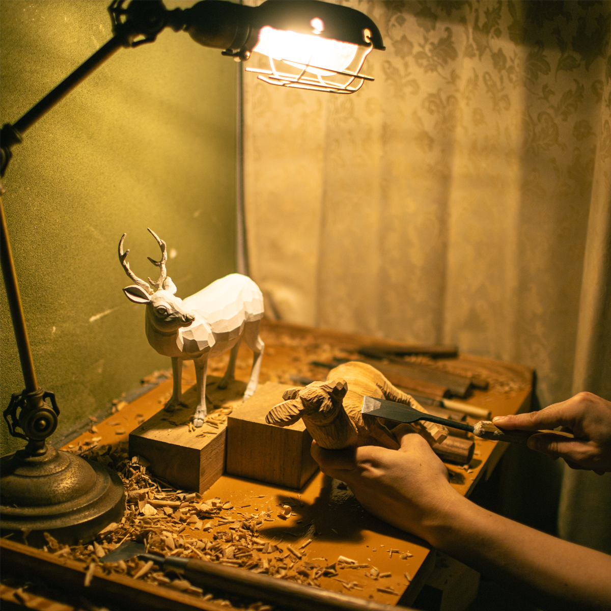 奈良一刀彫の美しさは、大胆な彫り跡に生まれる綾面と稜線の関係性にございます。